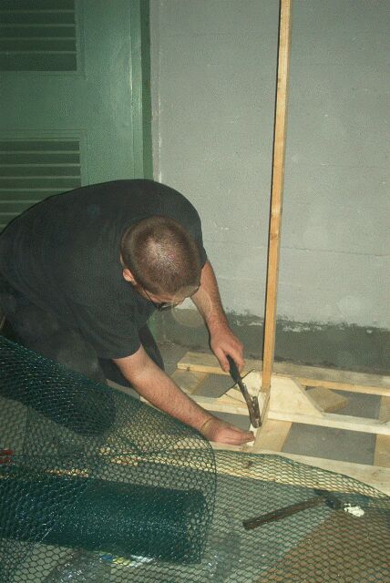(Bild 1) wurde Maschendraht gelegt (Bild 2), die Ecken miteinander verbunden