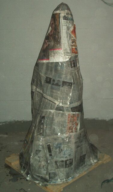 hatte. Die bekleisterten Zeitungen wurden in mehrer Schichten auf Justus