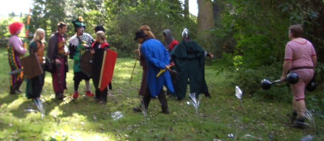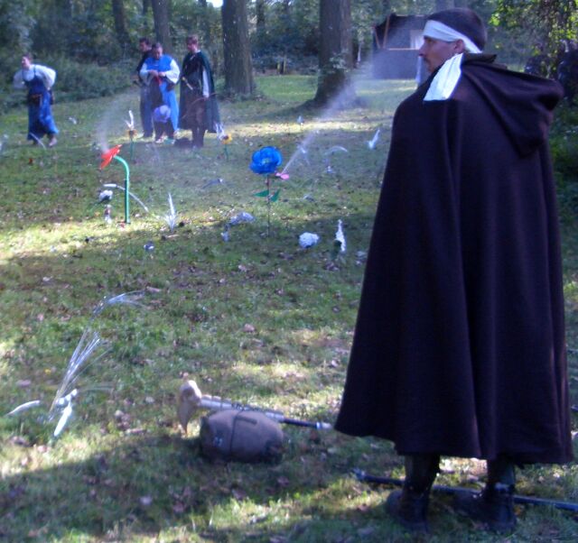 Der Jester organisiert die Gartenarbeit